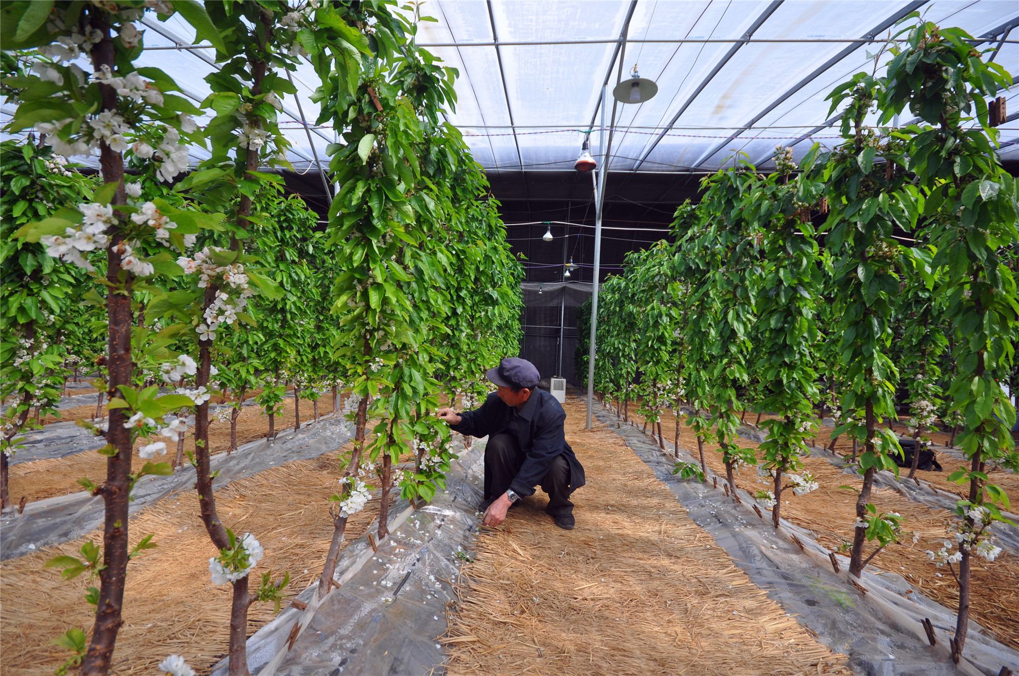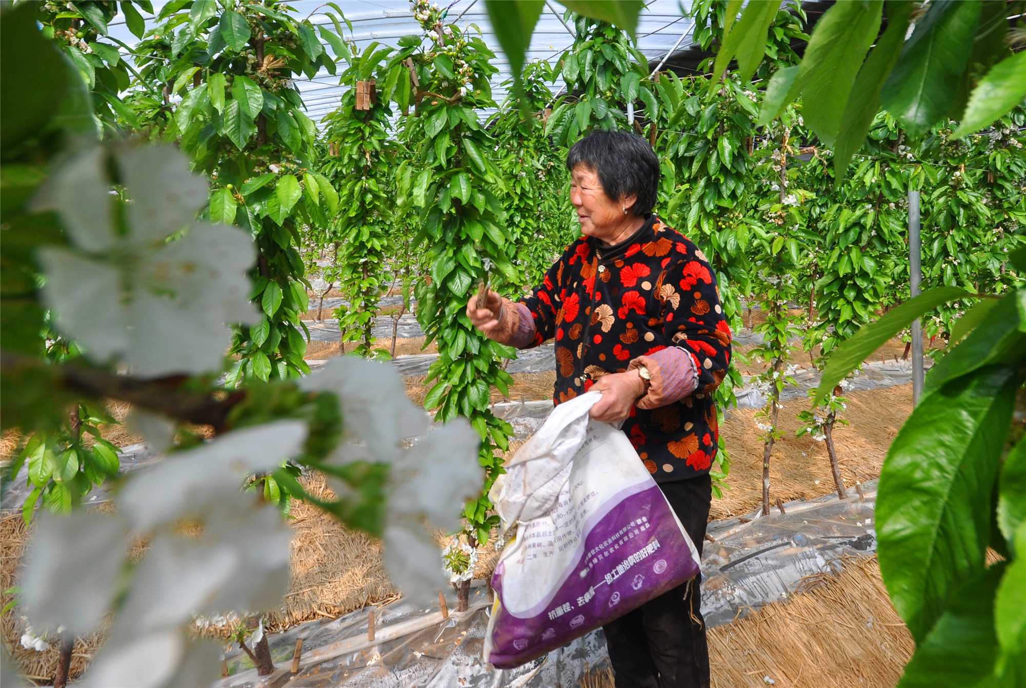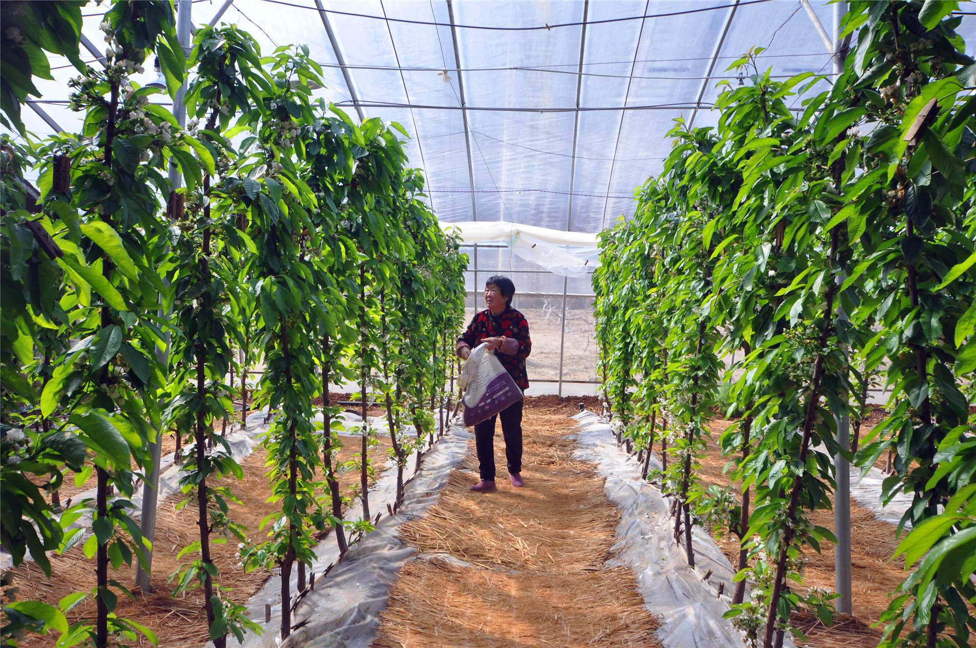 3月25日,南鲁山镇孟坡村樱桃大棚里,种植户管护樱桃。