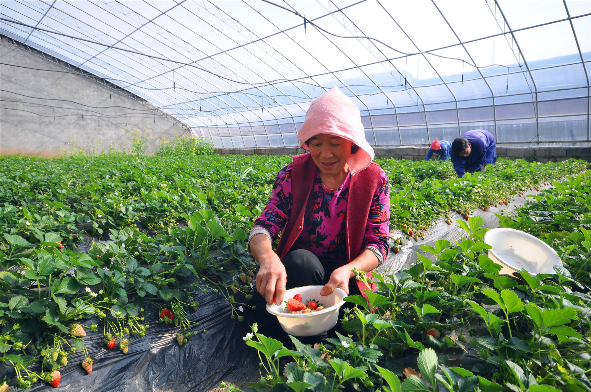 3月29日,南鲁山镇土门村村民采摘草莓。