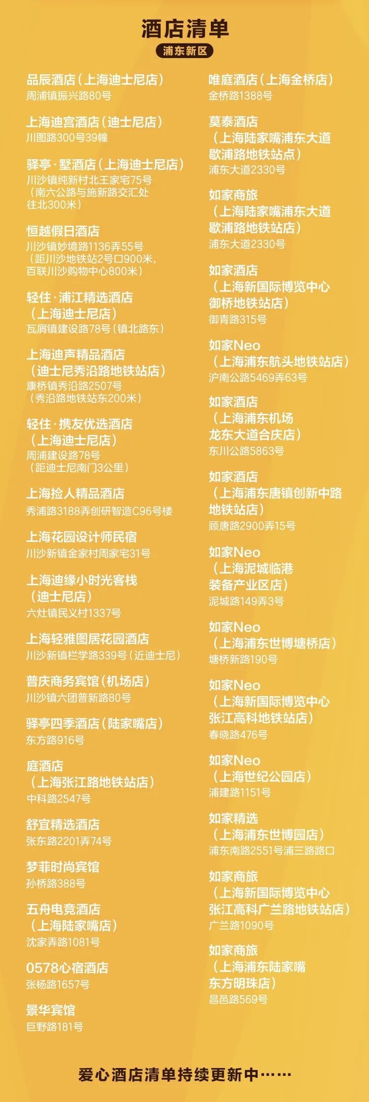 上海浦东31家爱心酒店