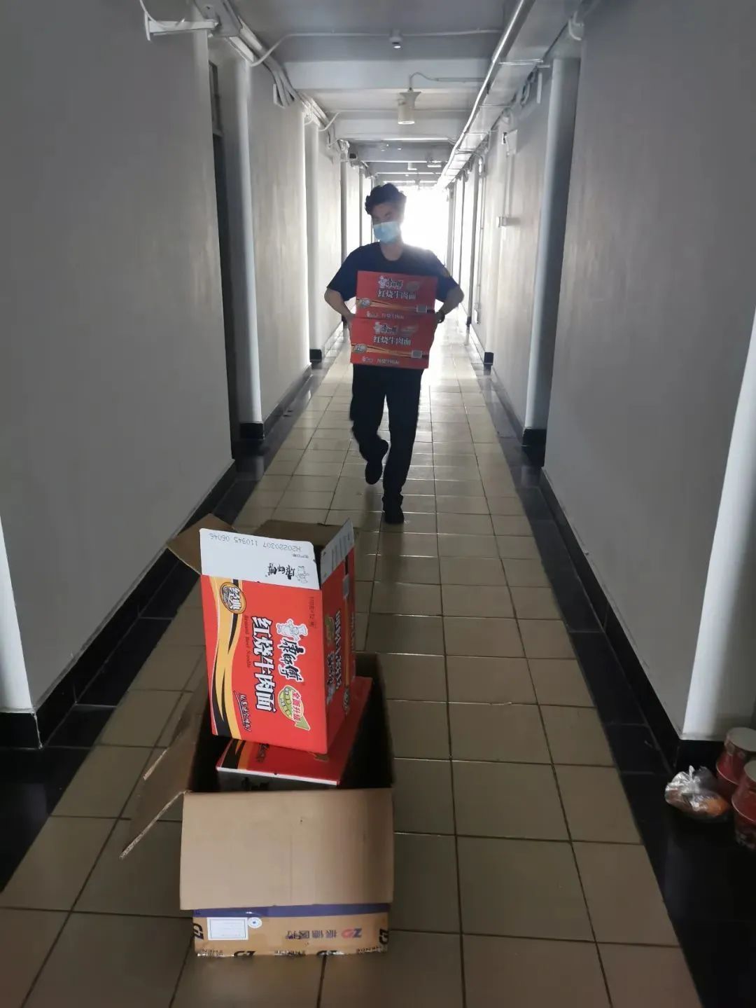 闭环管理刚开始的那几天,物资送达时间较为分散,如果某一天配送的物资较多,层长一天上下十几趟楼也是有可能的。“有时候下午一做完核酸,就会送来物资,物资刚发完,紧接着就会送来晚餐。”张政每时每刻都要关注手机上的消息,以便能够第一时间下楼,保证物资运送效率,“手机一直都充着电,一定不能关机的。”