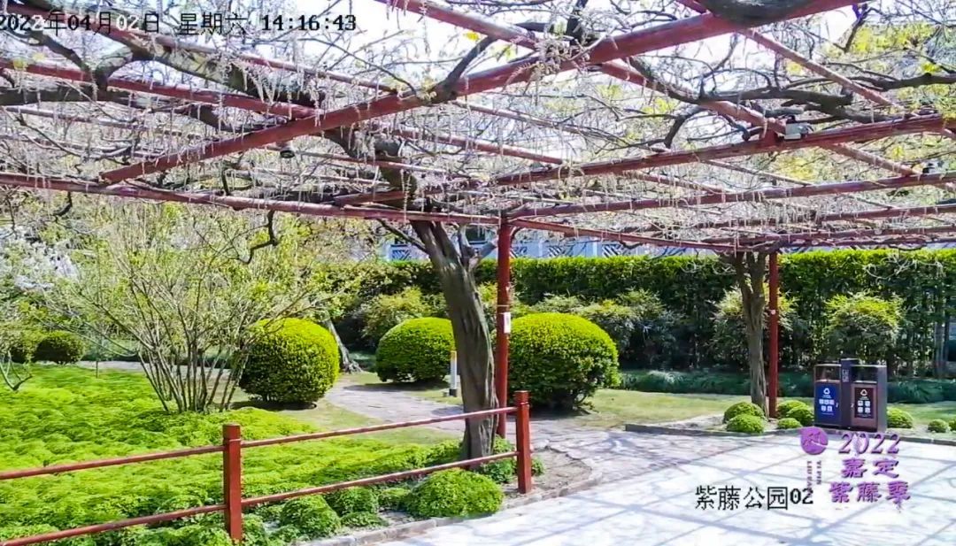 系列活动中,首先上线的是人气超高的“上海嘉定”APP“紫藤直播间”。经区园林绿化管理所工作人员实地观测,综合紫藤植株密度、长势等因素,今年共在紫藤公园及紫云廊选择了3处最佳观赏位置,安装高清近景摄像头。