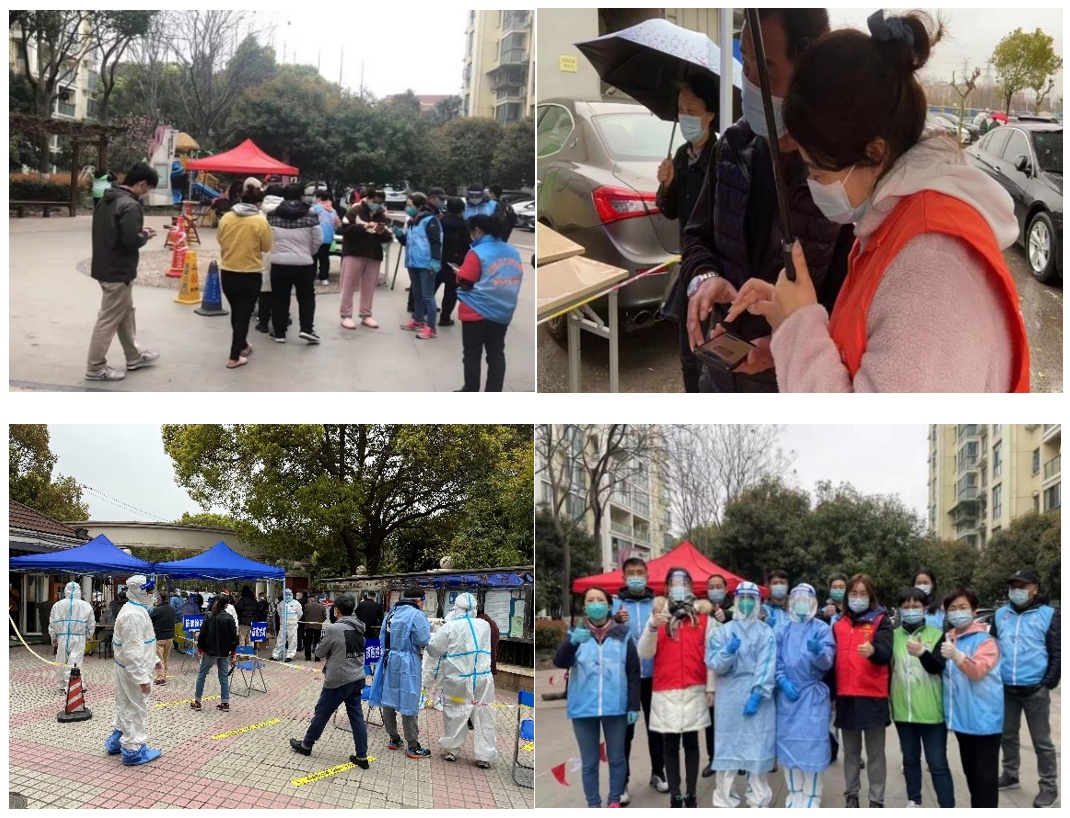 在疫情肆虐之下,上海依科党支部第一时间抽调公司骨干力量参加抗疫志愿活动。作为本次疫情爆发的重点区域之一,七宝镇中春路第三居委会接区防控办最新通知,要求于在2天内完成全民核酸检测任务,因时间紧迫、工作量大,吹响了志愿者“集结号”,众多公司员工积极响应号召,报名参加了所在社区的志愿者活动,纷纷化身“大白”和“小蓝”,迅速投入状态,协助居民和医生完成核酸检测工作,筛查人员合计1000余人。