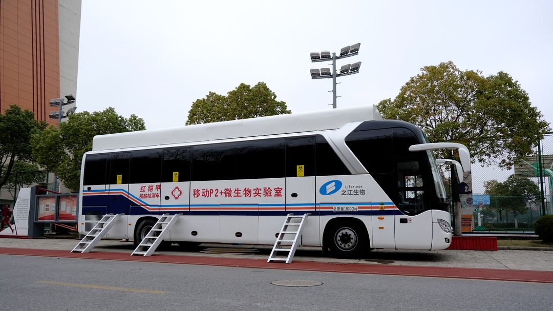 为助力疫情防控阻击战,之江生物开发了“红铠甲”移动检测车,它具有三证齐全、可移动、即停即检等特点,称得上是一间行走的P2+微生物实验室。“红铠甲”核酸检测车,全车长12米,宽2.55米,高度集成生物安全保障系统,配备之江生物自主研发的自动化核酸检测设备及实验室智能管理系统,可实现从样本采集、自动化的样本前处理、核酸提取、核酸检测到最后出具报告全流程,将传统、不可移动的PCR实验室变身为一个可移动的核酸检测基地。在疫情防控的关键期可大幅度加强重点区域、重点人群、重点行业的核酸筛查效率。