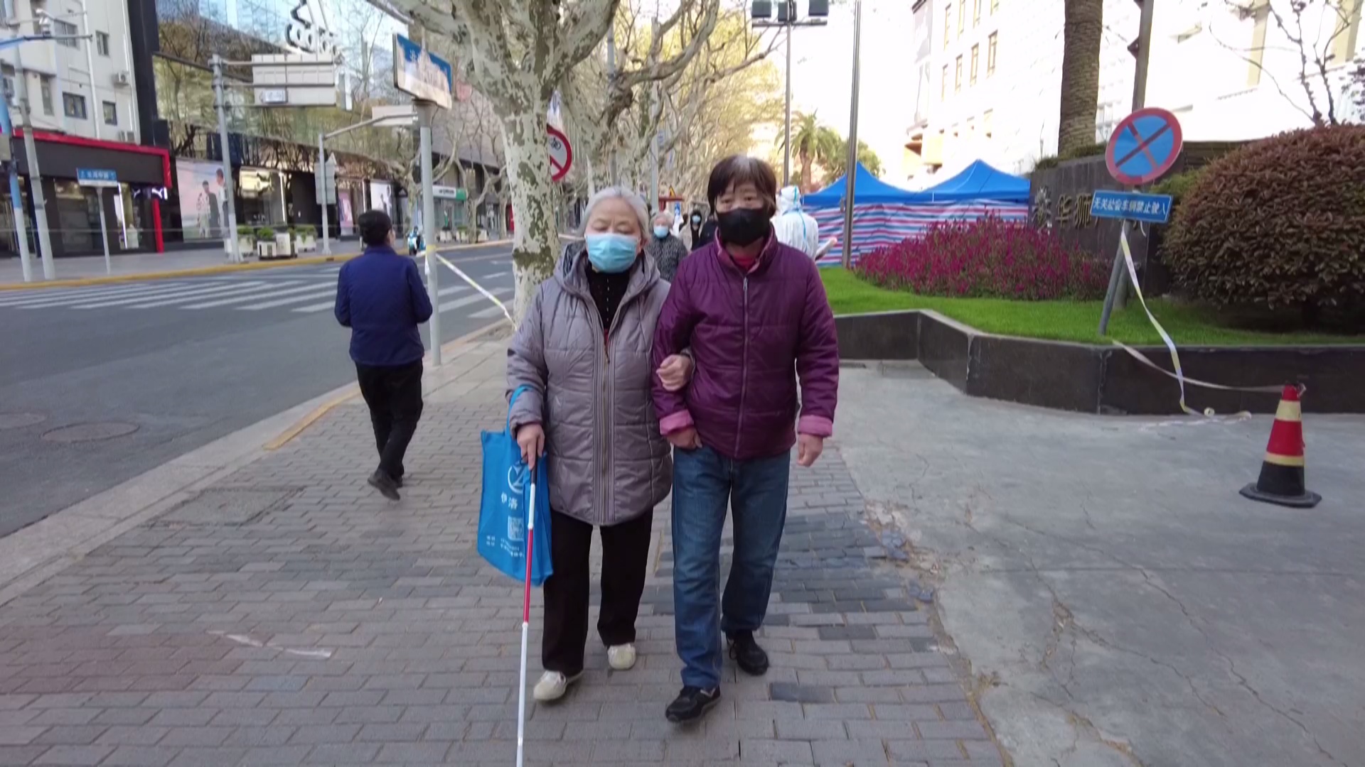 陈阿姨是一位盲人,但在邻居志愿者的陪伴下还是很顺利地完成了核酸采样。 陈阿姨告诉记者,“自己阿拉女儿嫁出去了,现在属于独居老人。自己的眼睛又不方便,幸好有邻居来帮助,真的很感动的。”邻居孙阿姨向记者表示,能帮忙的就帮一点,邻居就是这样的。