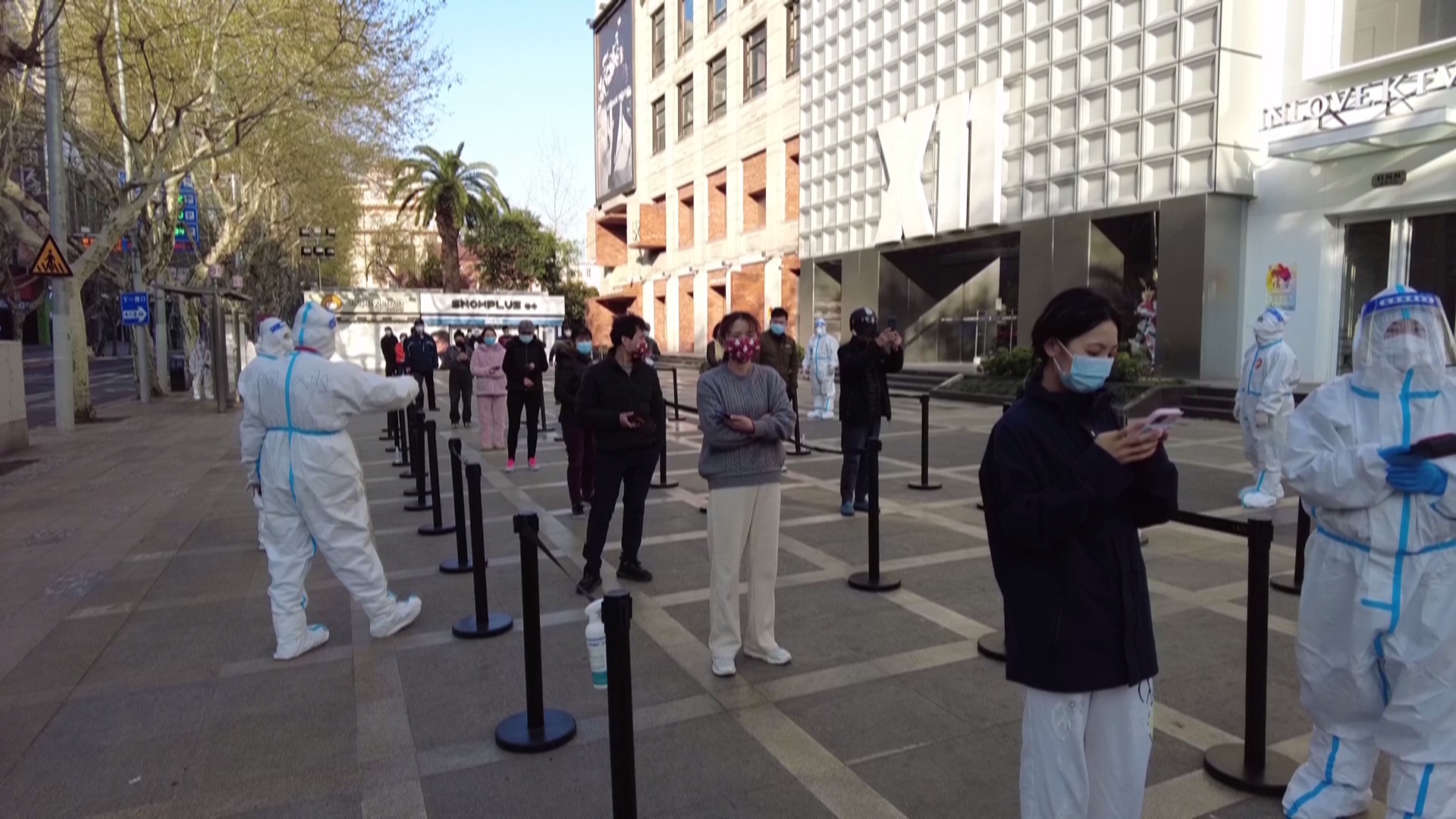 上午6点,记者在淮海路上的华狮广场上看到,这里是瑞金二路街道淮中居民区的一个核酸采样点,在社区干部和志愿者的细致安排下,居民按照各门牌号以及楼层依次排队进入等候区域,大家两米间隔,排成长队。由于这次核酸筛查时间早,不少社区干部和志愿者们都是很早起床。