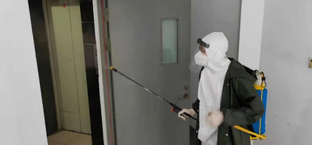 除了已经封控门洞之外,紫欣公寓当天有5个门洞402位居民下楼进行混合检测采样,上午10点全部完成,封控门洞则有4位医护人员上门采样,采取一户一管。对于已经完成采样的门洞,物业人员立即开展对楼道和电梯等处进行消杀。