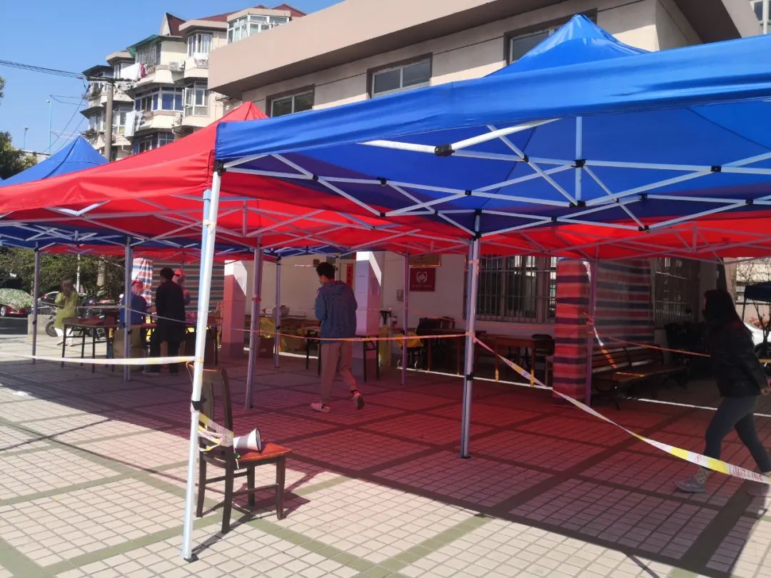 “虽然有16层楼,但居民还是自觉地从楼梯下来,这样避免电梯内接触”。志愿者张超是来自区教育财务会计核算中心的预备党员,今天早上5点30分,与小区里姚蓓蓓、高原雪等党员准时来到核酸检测点会合,他们都来自区各机关事业单位,此前已经参与居民生活物资发放,核酸检测队伍维持秩序等工作,彼此已形成了默契。