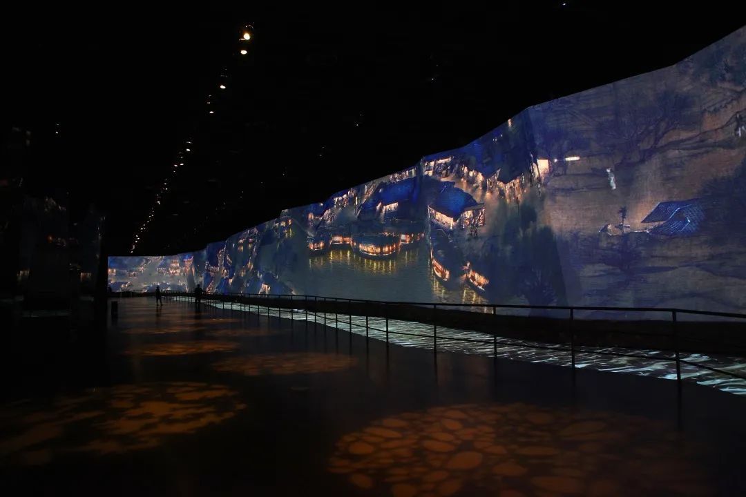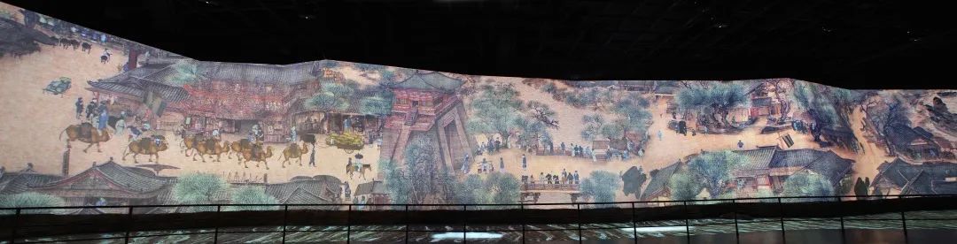 多媒体版《清明上河图》的总长有128米,高度达到6.5米,将原作放大近30倍!12台电影级大型投影设备同时开动,将“会动”的《清明上河图》投射到巨大的山型异形屏幕上。