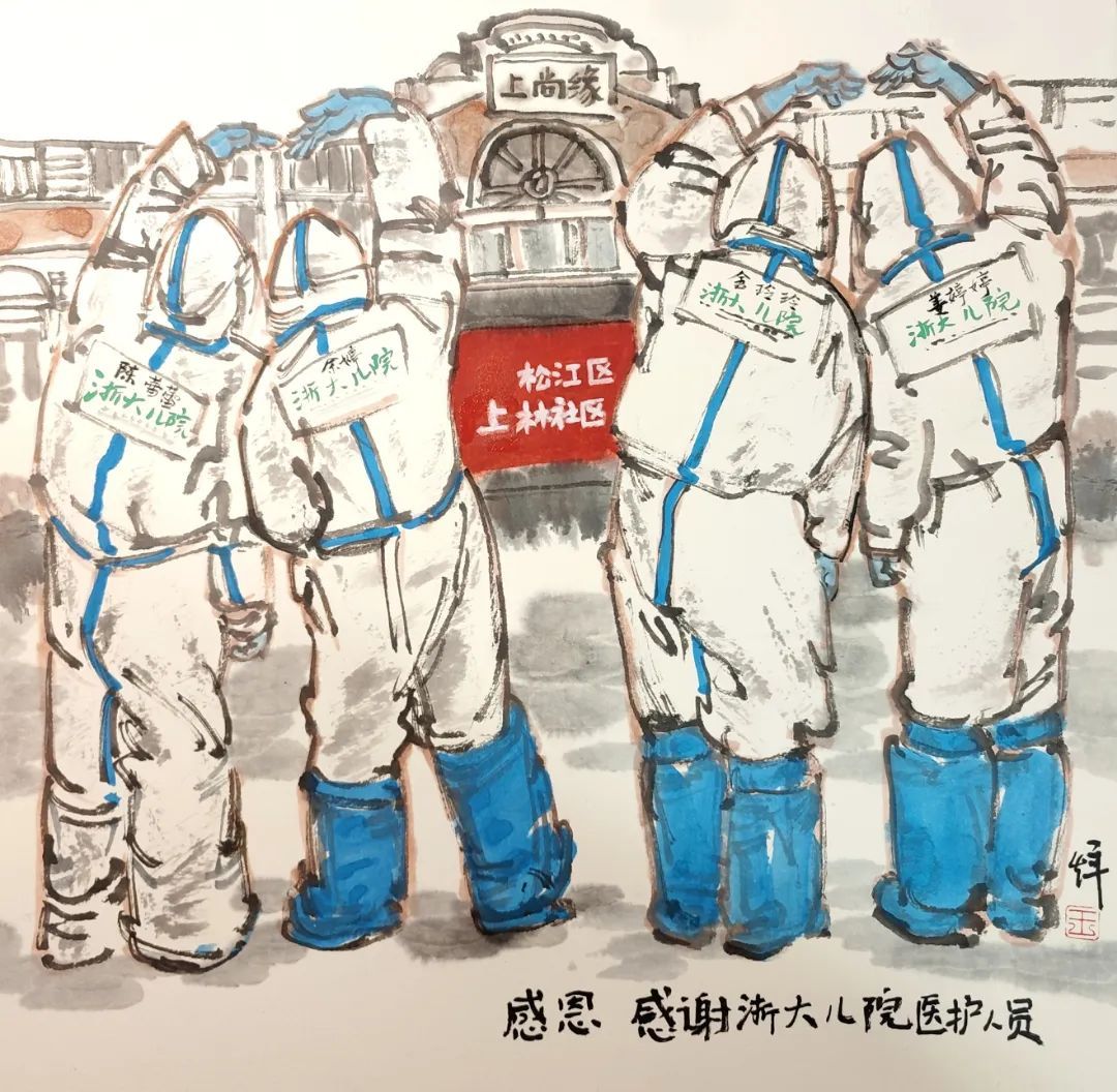上林社区的居民用画笔表达对一线工作者的敬意与谢意