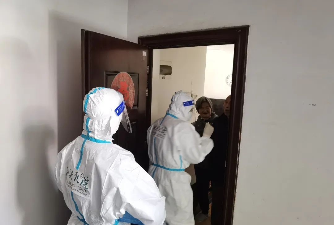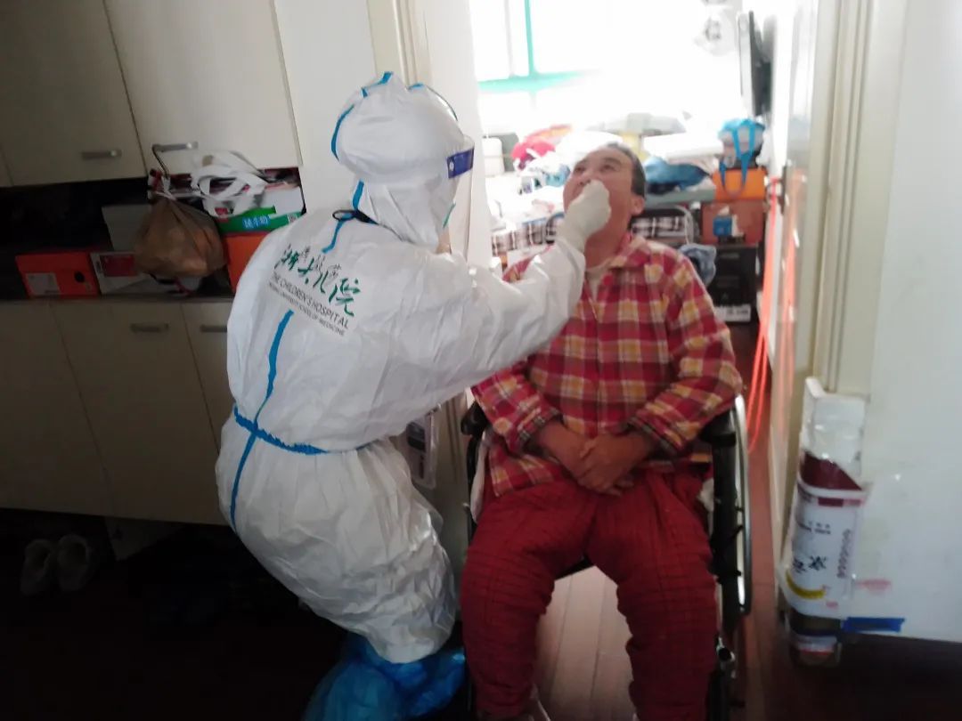 居住在广富林街道三湘四季一期20号的李阿姨因腿脚不便出门难,21号的钱叔叔则因为手术刚出院还在卧床,居委会在了解情况后,第一时间请浙大儿院援沪医生上门为他们做核酸检测。类似的情况还有很多,为了确保疫情期间核酸检测“不漏一户,不漏一人”,居委会与援沪医生通力合作,将暖心服务送入居民家中。