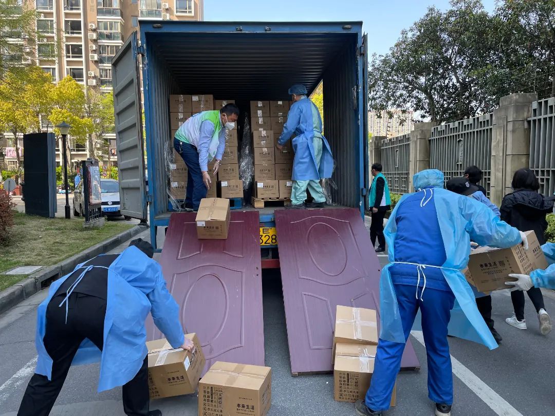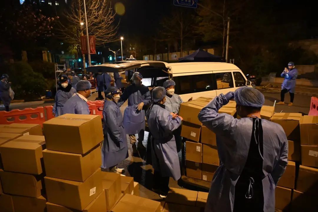 “物资到啦!”一辆辆满载保供物资的集装箱卡车,停在各社区门口,装满蔬菜的牛皮纸箱塞满了整个集装箱。各社区第一时间组织物业工作人员和志愿者们转运、分拣,来回不停地搬运货物。大家干劲满满,从下午一直忙活到晚上,每个人都期盼着尽快将这份温暖送到居民手中。