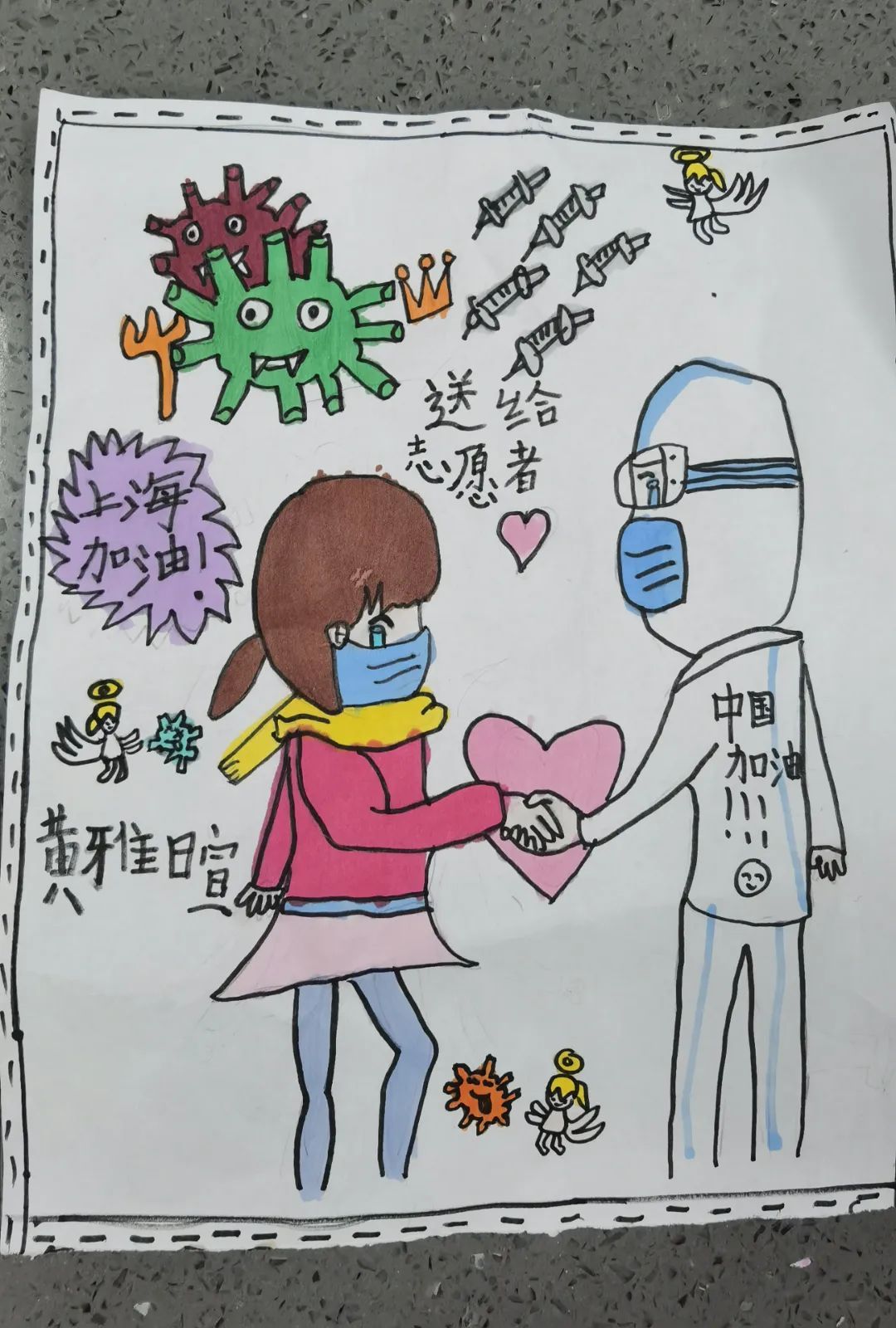 蔷薇社区和松云水苑的小朋友送给志愿者们的“爱心”画作