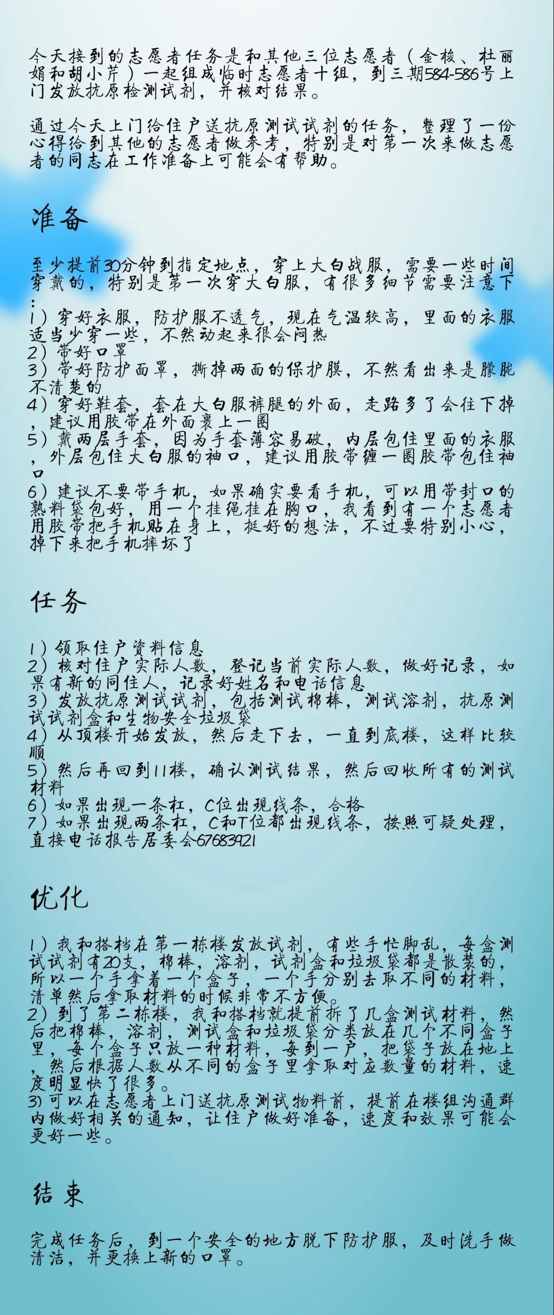 他说:“相信有众多和我一样的志愿者,还有和我一起并肩作战的党员同志们,我们的上海一定会迎来曙光,志愿守沪,抗疫必胜。”
