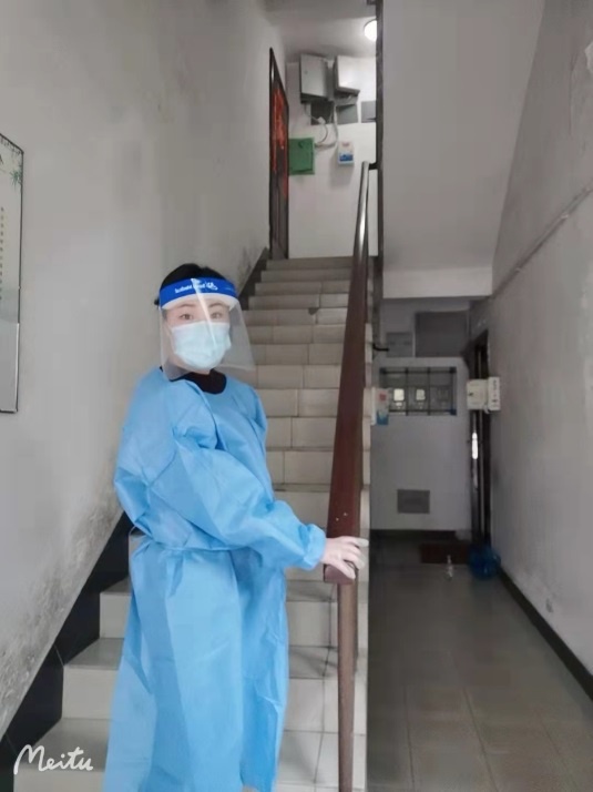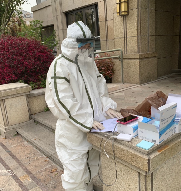 出版社党支部杜颖颖自3月26日第一次报名参加志愿者工作,完成了抗原发放、结果统计、日常物资配送等志愿服务工作。4月4日以二级大白的状态参加了浦西第二次核酸筛查。作为参加过2007年上海特奥会志愿服务、2008年汶川地震支援都江堰服务工作、2010年上海世博会志愿者等多类服务工作的“老”志愿者,她觉得参加此次抗疫志愿服务心里百感交集,因为形势紧张,志愿者需要更大的耐心和同理心,从社区居民的切身利益出发开展志愿服务,比如配送物品的时间、参加核酸时上下楼的人数安排、步行到小区的线路安排等等,很多细致、具体的工作都需要志愿者发挥主观能动性。她表示:我们楼的志愿者有不少和我一样,上有老下有小,但是只要人民需要,国家需要,我们中青年党员还是会勇敢地站出来,为了守护我们家乡出一份绵薄之力。