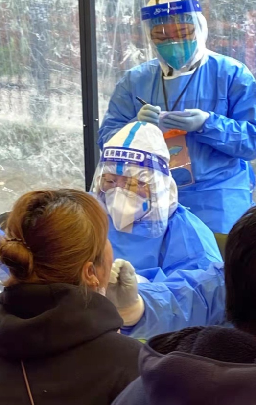 新一轮核筛期后,联合第二党支部潘秋晨居住的小区由于仍存在新增病例,被划分为封控区,小区内约5000人需要再次进行情况摸排,并连续开展两轮核酸检测。时间紧、任务重,她主动报名成为一名核筛志愿者。4月1日接到任务以来,她协助居委进行了小区人员情况摸排、分发检测试剂、指导试剂使用、查看和登记检测结果等工作。她表示:作为青年党员,更要在重担、难关、风险中接受考验、磨炼品格,树立为祖国为人民赤诚奉献的坚定理想。