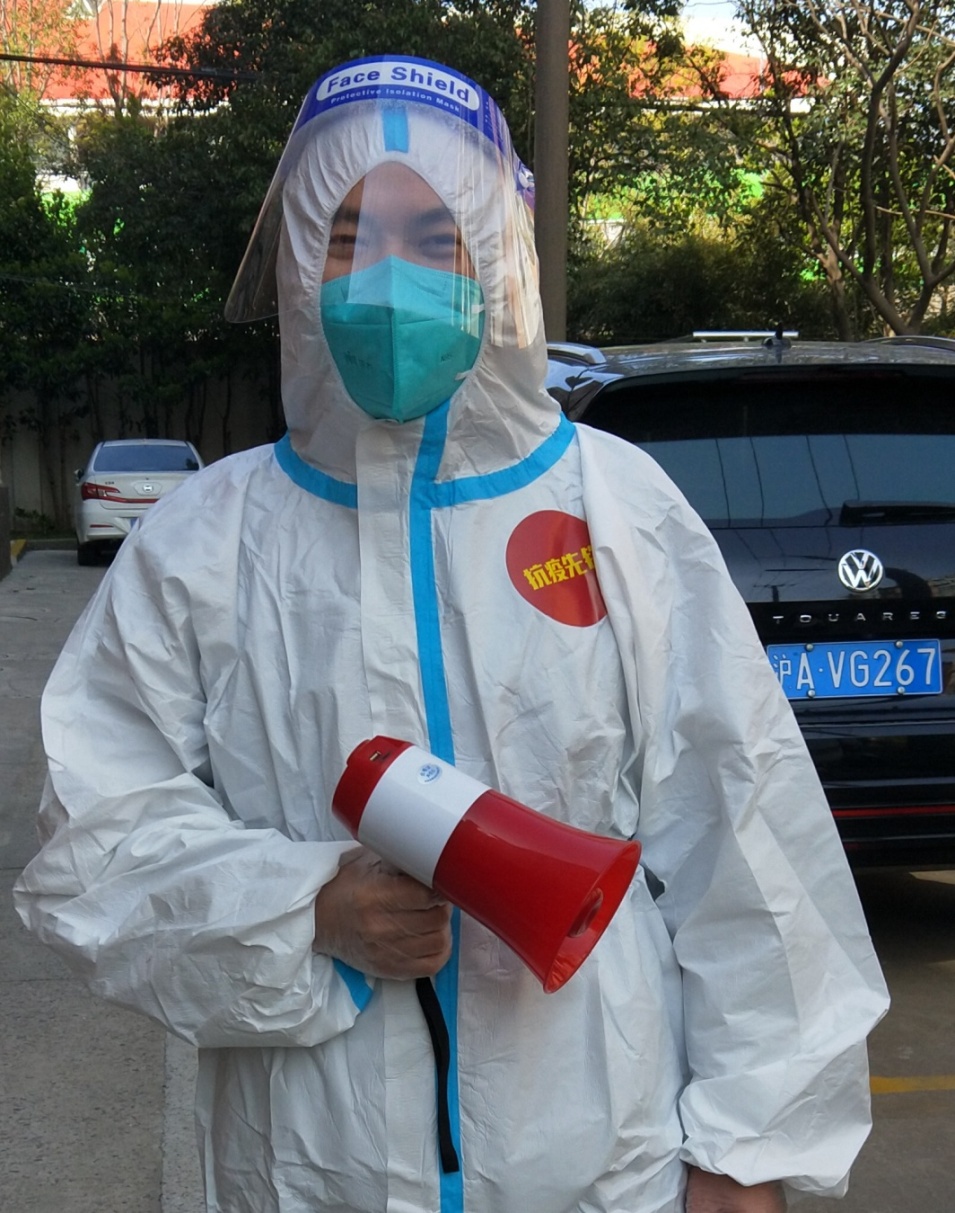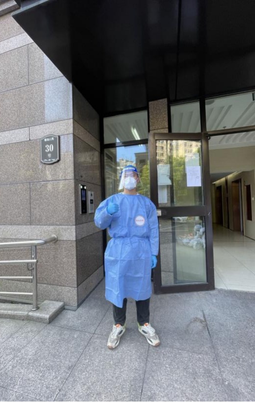 财务处党支部黄宇栋所在的凌云街道是徐汇区的两个疫情重点街道之一。他在得知自己小区出现阳性病例后,加入了凌云新村社区志愿者队伍。他参加了社区居民抗疫物资的装卸和给居民分发的工作,以及社区进行核酸检测时的维持秩序工作。作为一名志愿者维持秩序时,他在现场不断提醒大家保持安全距离,不要聚集;对有情绪的居民及时进行安抚。他表示:当我穿着防护服8个多小时不能上洗手间时,我真正体会到了医务工作者的艰辛与不容易。我坚信在我们党强大的政治优势和组织优势下,一定会很快控制住疫情。