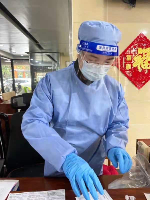 所在小区从3月16日起封闭管理,作为一名共产党员,党委组织部党支部周洁莉第一时间报名参加核酸检测志愿者服务。3月17日,在小区第一轮核酸筛查中,她主要负责队伍秩序维护、贴条形码、递送试管等工作。3月22日,她承担的任务是在采样医生旁边掰棉签、贴试管纸,协助医生加快检测速度。她积极响应党员“双报到”要求,报名参加居委组织的爱心礼包发放志愿工作,并在志愿者微信群里参加为购买防疫物资的募捐活动。战“疫”特殊时期,把初心写在行动上,为坚决打赢疫情防控阻击战贡献力量。