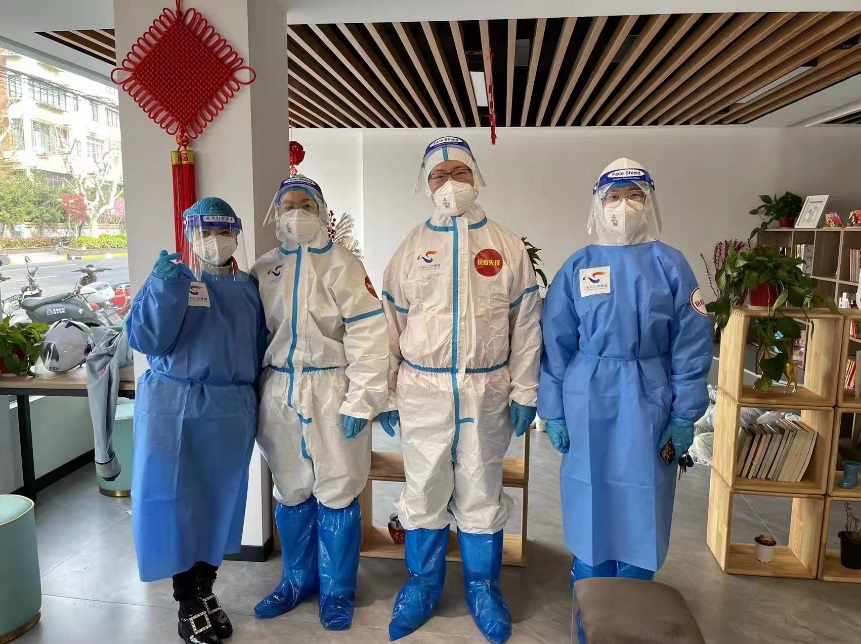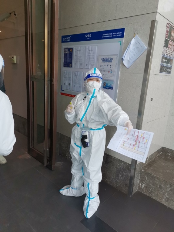 信息化办公室党支部黄雪莲积极响应号召,通过“先锋上海”线上报到,加入社区党支部防疫工作。她担任小区第二群负责人,招募配送志愿者、核酸志愿者等等;同时担任团购登记处负责人,负责登记团长、司机及购买明细。她参加过核酸检测现场志愿服务,成为大白中的一员,参与完成约7500人的核酸检测任务。她还参加了小区巡逻工作,严格贯彻足不出户政策。