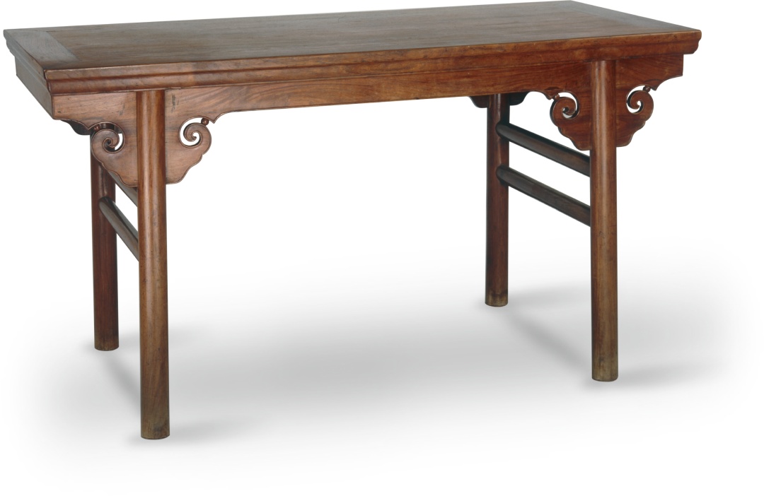 从牙头的形态和隐起的灯草线来看,此案注重细节的表现,讲究比例的协调,具有古典而清新的美感。雕饰仅见于牙头部位,连接牙头和牙条的圆珠纹的设计,有利于牙头两翼的坚固,巧妙而有新意,具有独特的装饰趣味,除此之外,别无赘饰。