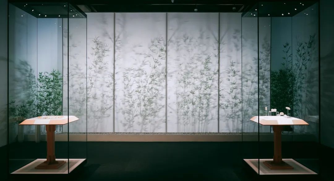 为配合展览主题,营造文人生活意境,此次展览的形式设计提炼了传统古建和装饰纹样的元素,借鉴江南园林造景之法,并复原了古代文人书房、亭台等场景,更有一隅小园错落其间。步入展厅,观众穿梭在白墙黛瓦之间,竹影徐徐,叠石参差,相映成趣。