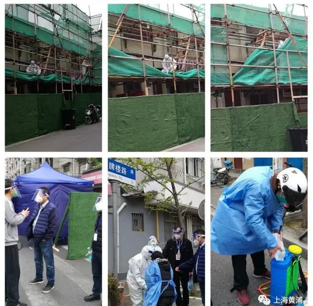 7名施工队员穿上防疫装备、戴好安全防护,登上脚手架从两个方向同时施工,把居民窗前的绿网拆除。同时,施工人员再次仔细检查脚手架安全情况并做好周边消毒。