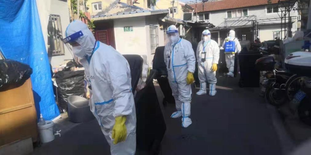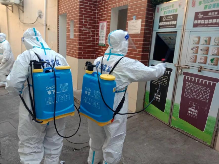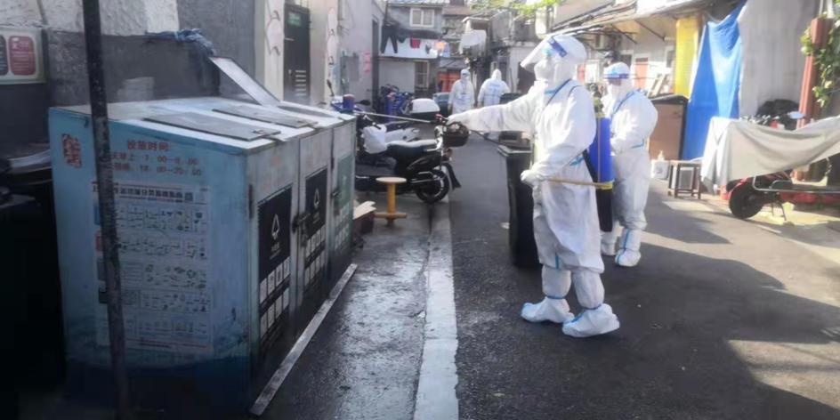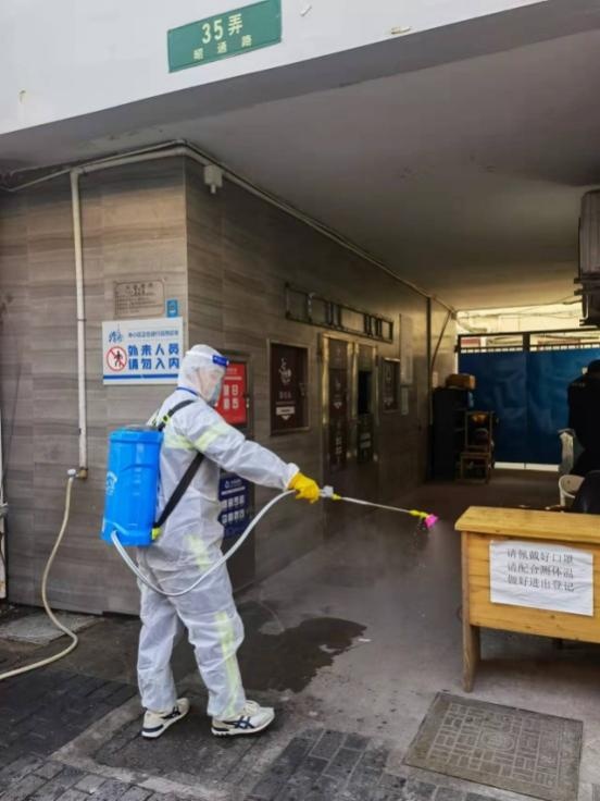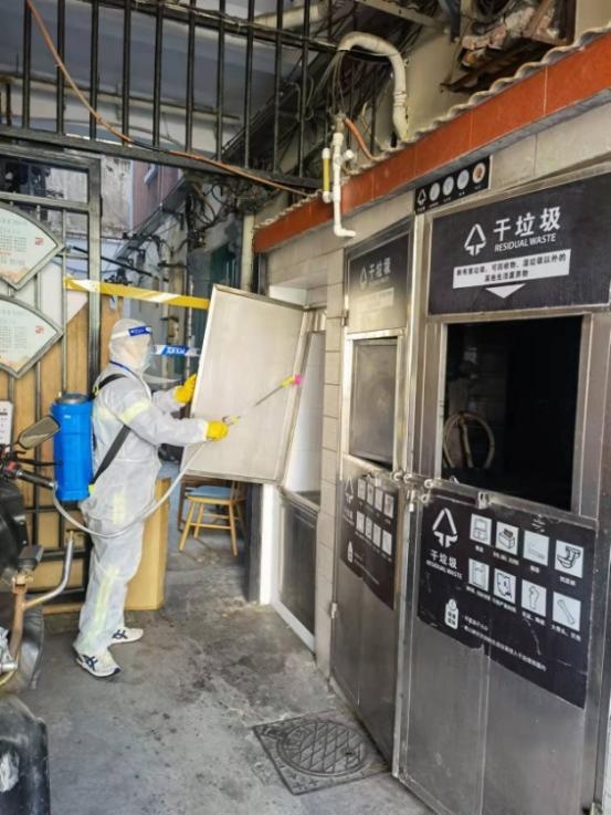 4月以来,黄浦区结合疫情防控形势和要求,将区域范围内67个封控小区以及283个非封控的直管公房、系统公房等老旧住宅小区作为重点消毒范围,对楼道、公共卫生间、电梯间、垃圾箱房、门把手等居民高频接触的部位和设施进行针对性消毒,减少感染风险。