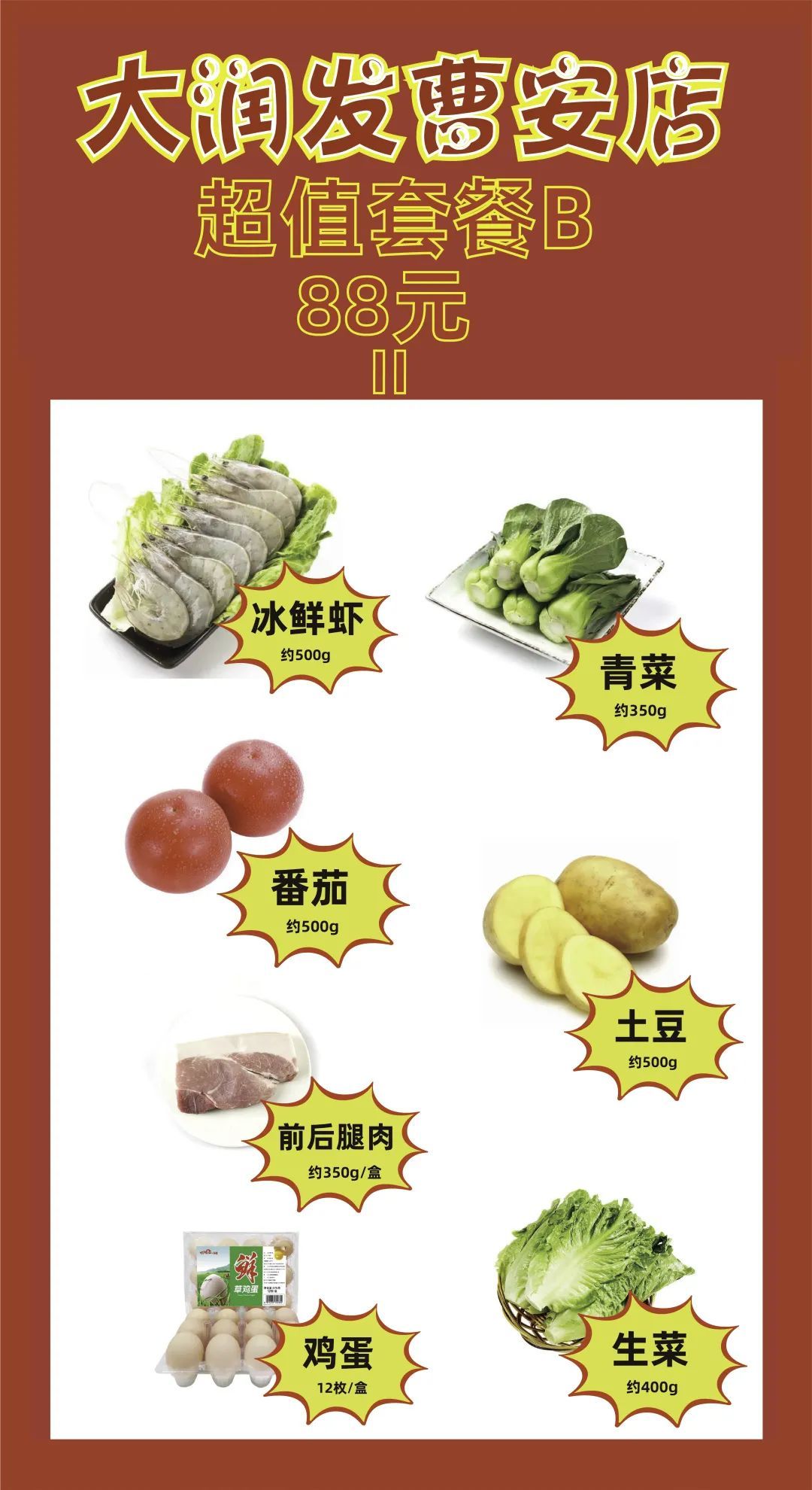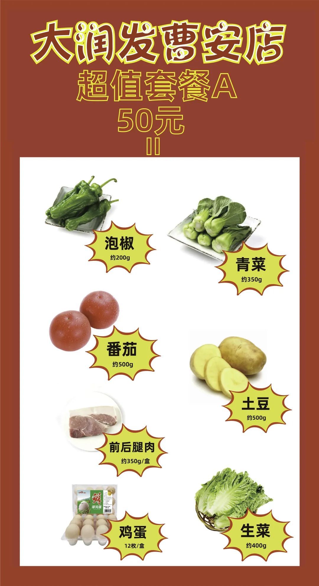 据悉,大润发已建立应急保供队伍,制定保供菜单,向周边居民提供两款价格公道实惠的菜肉套餐,并提供配送服务。