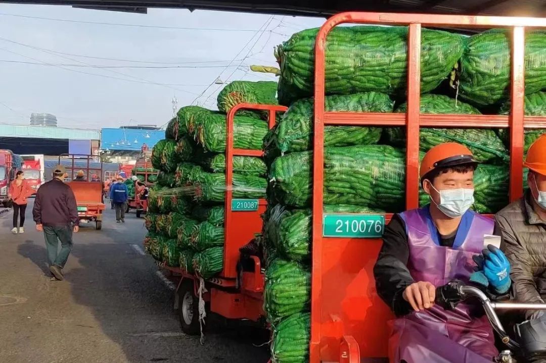 据悉,为全面助力疫情防控,市场投入了400余辆短驳车,全力配合市场的周转。同时,还投入了110辆的新式三轮车,可以直接秤重交易,加快蔬菜周转速度。所有工作人员也都加入到了志愿者的行列,投入市场各个关键岗位上。