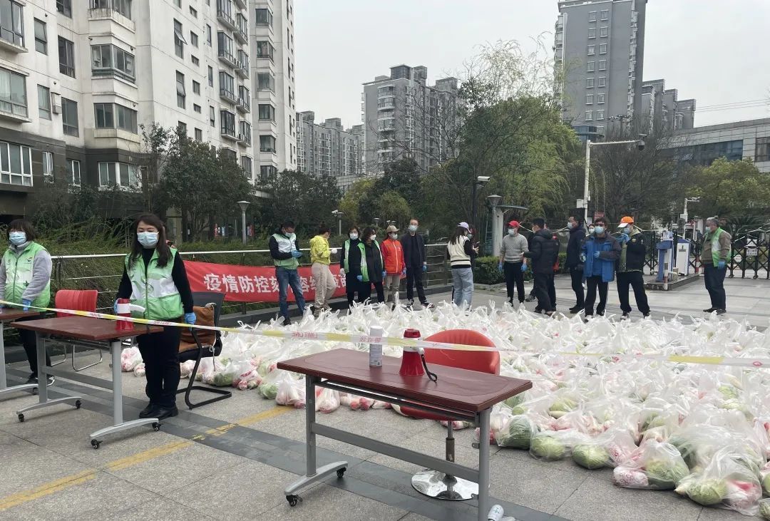 为保障居民封控期间的基本生活需求,解决蔬菜购买难的问题,3月25日至3月27日,以一户一份蔬菜为标准,真新街道为辖区内18个社区配送了41515份蔬菜礼包。在市场、居委会的党员志愿者们全程护送下,从市场到社区、再从社区到居民家中,不漏一户、不少一份,保证每户人家都能拿到蔬菜。