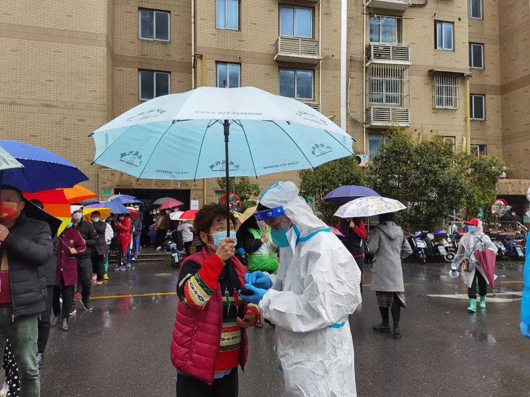 即便近几日的天气总是阴晴不定,时常下起暴雨,然而他们顶着狂风,无视脸上的雨水和早已湿透的鞋袜,从早上8点一直到晚上8点始终坚守在岗位上,不间断地为居民提供志愿服务。甚至在凌晨1、2点收到紧急任务,需要第二天早上五点半前往志愿服务点,他们也是毫无怨言准时抵达。