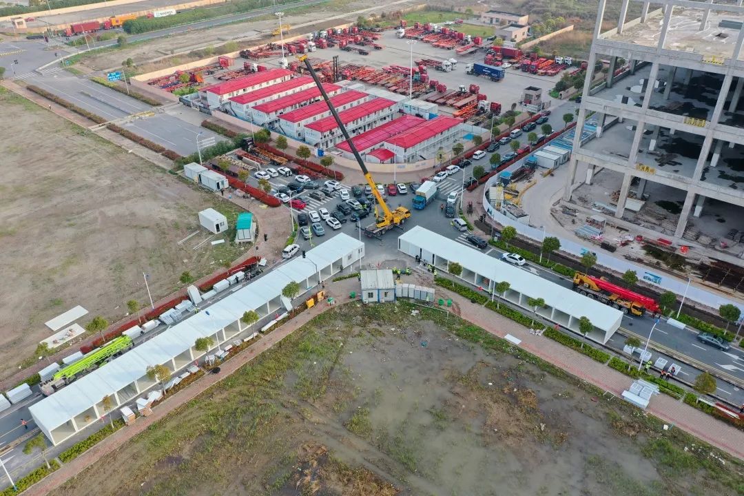 中建八局接到上级指令,要求在上海临港洋山保税区紧急改建一座收治轻症和无症状感染者的集中隔离点。项目总建筑面积15.8万平方米,设隔离13956张床位,并征用市政道路搭设近1000个集装箱作为办公区和宿舍,其中600个集装箱满足1680名护理后勤人员住宿。
