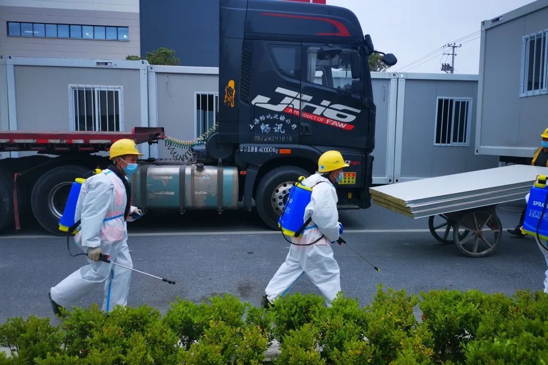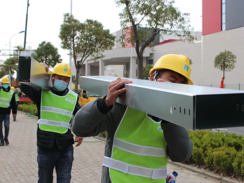 项目建设共涉及300余项应急物资品类,涵盖土建、安装、智能化、装饰、医疗、家具5大类专项工程,且最为紧缺的高效风机、高效过滤器、配电箱柜等设备类材料的调配往往需要跨省市、跨区域采购。中建八局充分发挥发挥集团优势,狠抓资源保障,建立“百人采购团”,整合全局方舱医院和隔离点的优质分供商资源,严控计划制定、集中采购、零星采购、快速签约、物流跟踪、收货验货、堆放储存、限额领料、消耗管控、成本核算等环节,确保按时按节点进场。四公司调动一切可调动的资源,从广东、江苏、浙江、山东、河北近十余省市抽调、采购紧缺资源,在最短的时间内调配8.4万平方米地板,4.5万平方米隔断,近2万套开关插座,770套一体式卫浴等物资。