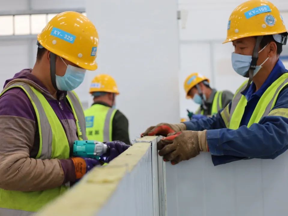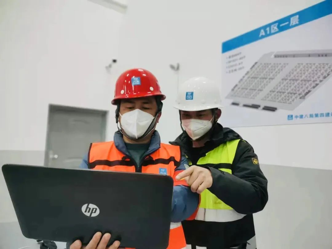 项目图纸设计时间短,过程中如果出现设计变更较多的情况,将严重影响施工进度。中建八局充分发挥参与全国70余座方舱医院和隔离点建设的成熟经验,狠抓设计管控,主动与设计单位提前对接,引导设计更为合理、更为快捷,并在负压设备、污水处理、污染物处理等方面进行了优化、提升,确保功能完备、高效建造。