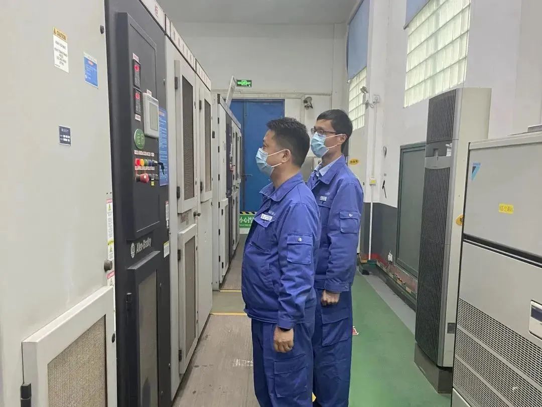 此外,“峰匠供水保障组”的组员们还帮忙分发防疫物资、维修淋浴设施、安装窗帘、维修照明设施来保障惠南水厂封闭式管理下职工们的生活需求。同时,面对日常的仪表维修维护,常规的设备巡检仔细统计,毫不松懈,做到疫情防范及设备安全运行“两手抓”。封闭期间,突遇臭氧冷即泵损坏需立即抢修,面对时间紧、任务重、人员少的难题,“峰匠供水保障组”的组员们连夜加班,加紧加急完成了臭氧冷即泵的抢修,确保了设备安全运行。又因正值雨季,大风大雨的肆虐,造成厂内高压信息柜跳闸、电子围栏受损等情况,为保障厂区安全生产基础,“峰匠供水保障组”的组员们立即赶赴并完成抢修,及时消除安全隐患。