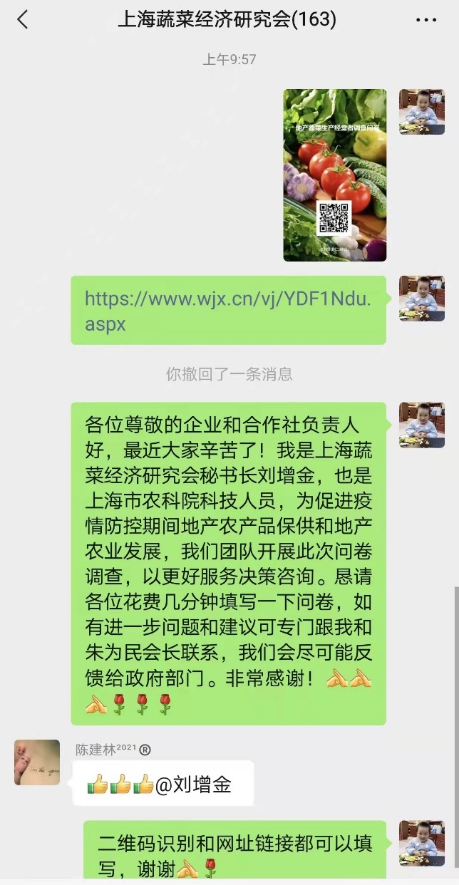 研究会积极发挥决策咨询功能,主动设计调查问卷,在会员群开展调研,向有关部门报送农产品生产保供和民生保障的政策建议。