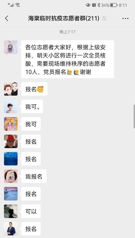 疫情当前,没有旁观者。在党建引领之下,由居委、物业、楼长组成的抗疫工作小组和社区居民自发报名组成的志愿者团队积极践行奉献精神,纷纷加入一线战斗。据悉,目前小区志愿者队伍已增至214人,其中党员双报到志愿者165人。