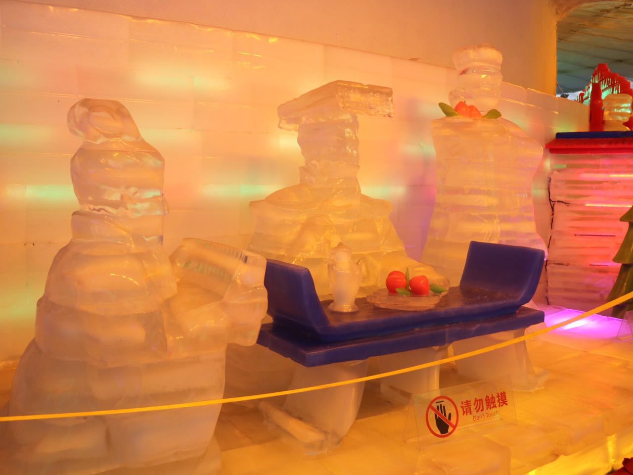 山上的地下冰宫是在原纪国藏兵洞的基础上扩建而成的景点,里面有漂亮的冰雕、冰灯艺术展。在这里,还可以体验坐滑冰道的刺激,这是景区主打的另一精品旅游项目之一。