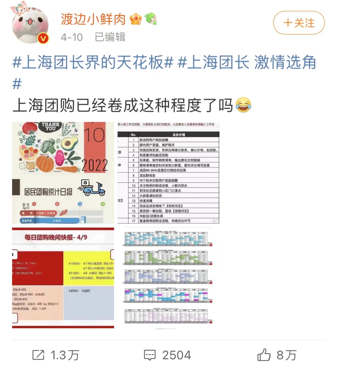 3月24日,庄文菁将爱心保供花木惠姐征集令发至群里,在庄文菁的号召下,最开始的“惠姐团队”是联洋七个小区的负责人,现在,“惠姐团队”已有90余人。“惠姐”其实是“邻里团”的团长们。她们都来自上海浦东新区联洋社区,都是小区的妈妈们。所团物品由街道提供渠道商,惠姐们分工协作,为辖区内11个小区居民的生活刚需“买买买”。