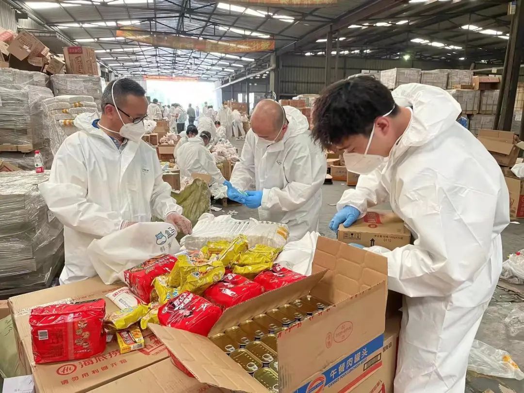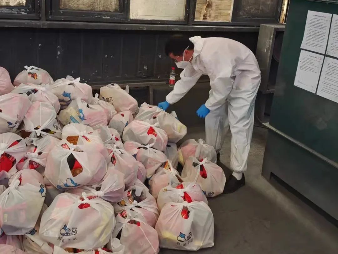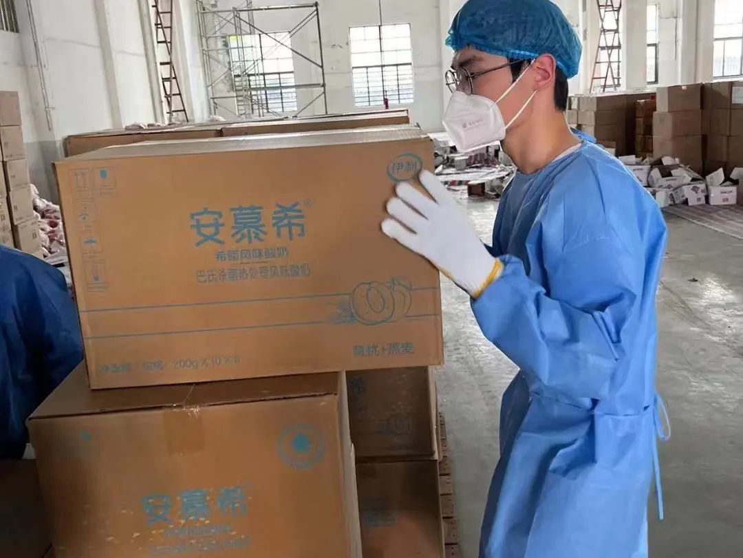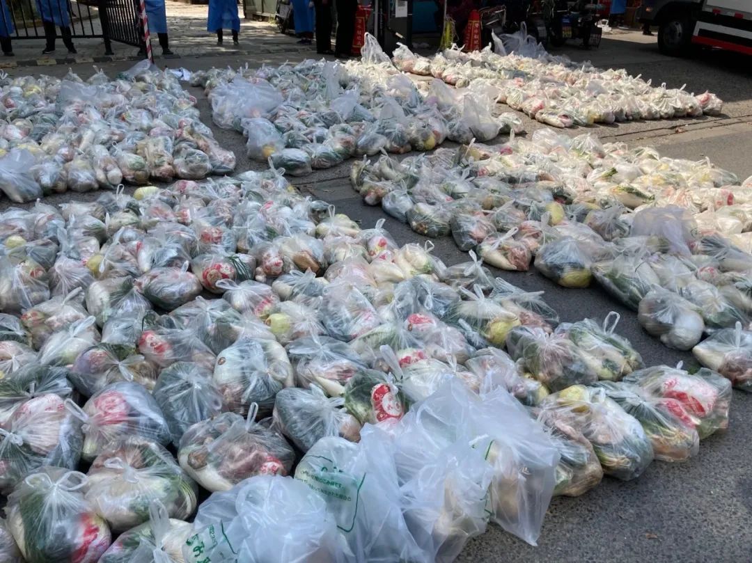 在物资分拣现场,他们一丝不苟,为封控小区配送蔬菜食品等,用实际行动保障居民“菜篮子”。