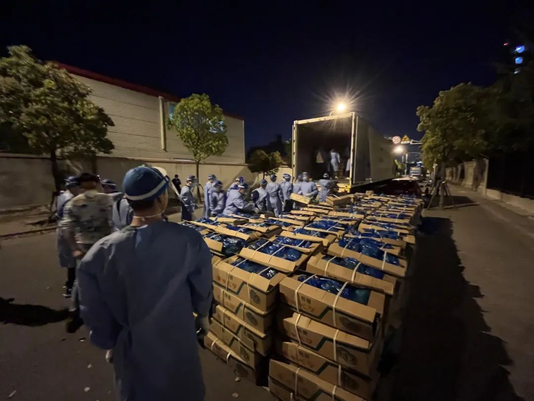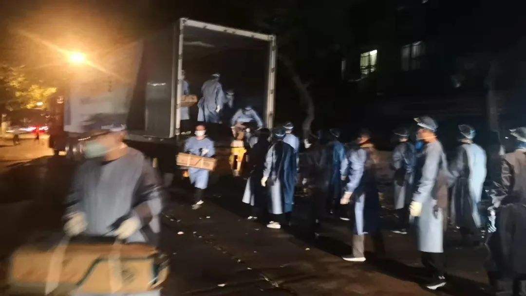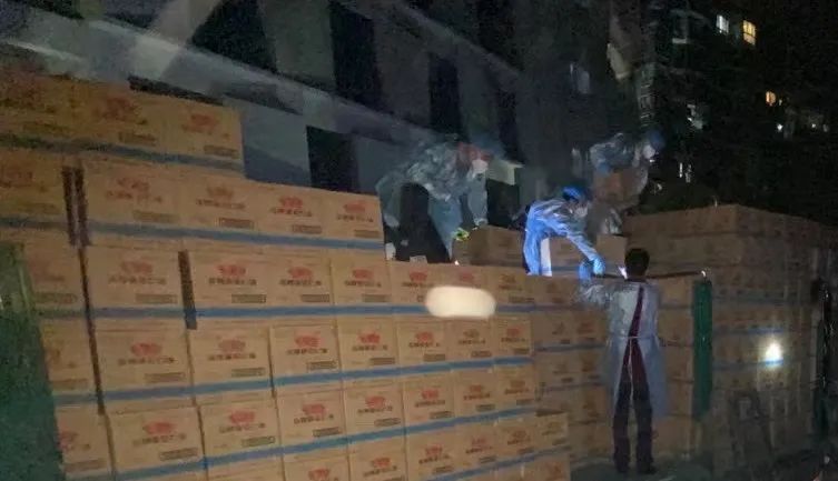 4月7日,来自区市场监管局的队员前往张庙街道参加抗疫物资搬运工作。在工作中,他们克服天黑光暗、工具缺少等困难,做好米、面、油、药等物资的装卸工作,终于在凌晨一点半将所有货物卸下,保证抗疫物资及时送到居民手中。