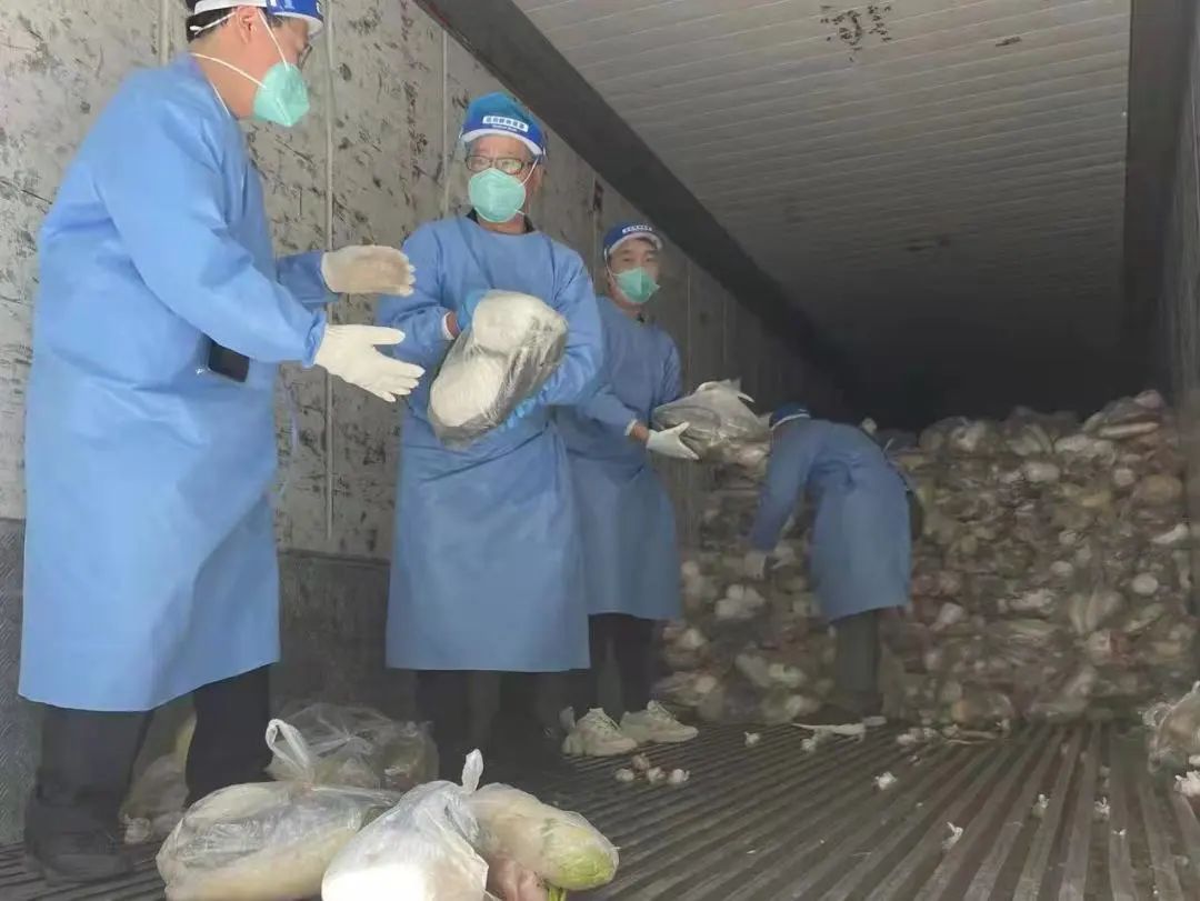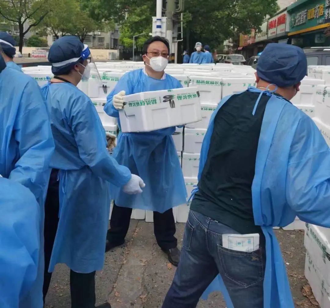 来自区农业农村委的队员们,在单位主要领导亲自带队下,分别赴吴淞中学、行知中学、高境镇等地,开展装卸、储运、分发抗疫物资工作。为了让居民能及时拿到新鲜的蔬菜,纵使每天战斗到深夜,他们也始终保持昂扬的精神,能吃苦、能战斗,马不停蹄地做好保供工作。