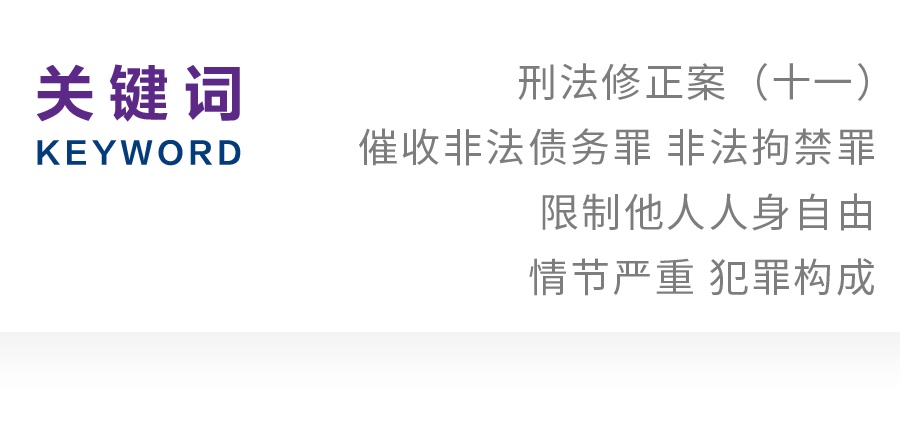 近年来,社会上各类非法贷款案件层出不穷,由非法贷款行为而引发的暴力和“软暴力”催收现象也愈演愈烈,严重影响社会的稳定健康发展,为了维护我国金融秩序,国家对此类行为的监管打击一直在不断升级。最高人民法院、最高人民检察院、公安部等有关部门相继出台各类法律文件,以暴力和“软暴力”催收为中心,着重整顿与催收业务相关的网贷平台、大数据爬虫公司等机构。在这一大背景下,刑法修正案(十一)(下文简称“刑修十一”)也针对暴力和“软暴力”催收行为进行了修正,在寻衅滋事罪后增设第293条之一“催收非法债务罪”,该罪规定,“有下列情形之一,催收高利放贷等产生的非法债务,情节严重的,处三年以下有期徒刑、拘役或者管制,并处或者单处罚金:(一)使用暴力、胁迫的方法的;(二)限制他人人身自由或者侵入他人住宅的;(三)恐吓、跟踪、骚扰他人的”。自3月1日刑修十一正式实施起,浙江、广东、上海等地开始出现催收非法债务罪的判例。仅在刑修十一出台后的第五 天,便出现了全国首例以催收非法债务罪定罪量刑的案件。该案件此前警方和检察院对犯罪嫌疑人指控的罪名是寻衅滋事罪、非法侵入住宅罪等罪名,而广东省肇庆市端州区人民法院最终将被告人黎某等4人的行为认定为催收非法债务罪,并分别被判处有期徒刑1年8个月至6个月不等,并处罚金。随着修正案的出台以及各地司法判例的涌现,因对该罪构成要件理解不同而导致的“同案不同判”现象十分明显。行为人同样都是对高利贷进行催债,手段也都包含限制他人人身自由的行为,但有些法院以非法拘禁罪和催收非法债务罪数罪并罚,有些法院却仅以催收非法债务罪或非法拘禁罪一罪定罪处罚。可见,在司法实践中,对于催收非法债务罪的认定仍然存在分歧。理论界和实务界围绕本罪展开了热烈的讨论,主要争议在于该罪增设的意义、构成要件的理解以及该罪与其他罪名的界分问题上。本文将着眼于第293条之一“催收非法债务罪”中的限制他人人身自由型催收非法债务行为,从立法角度对其进行评析,并着重梳理此罪具有争议点的部分犯罪构成要件,解决实践中与索债型非法拘禁罪的区分问题。