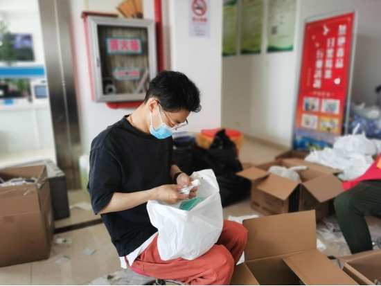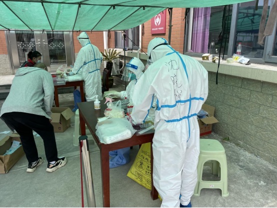 自参加志愿者防疫工作以来,沈晓悦已协助村委会完成6轮核酸检测排查工作,辅助医护人员进行核酸采样,除了核酸检测辅助、抗原试剂发放等工作,脱下“大白”后的他又马不停蹄的投身到“快递员”的行列,和其他工作人员、志愿者一起为村民们分发派送各类生活物资。