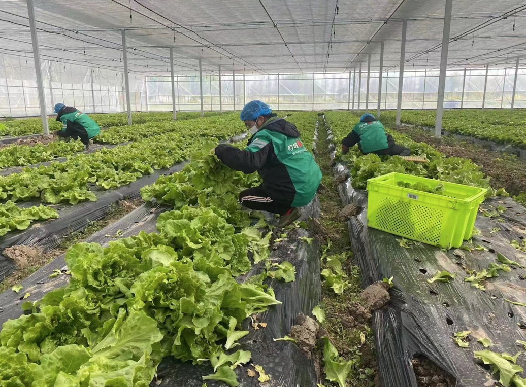 凌晨5点多,55岁的毛菊初就来到位于上海市金山区廊下镇的叮咚买菜农场连栋大棚里,带领生产队的队员们抓紧采收,现在收割的主要是小青菜、杭白菜……
