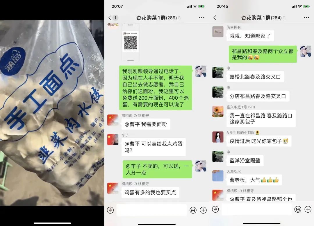 “这两天封控在家,我盘点了一下之前的库存,没想到还有200斤面粉、400个鸡蛋、两箱拉面、几大袋速冻饺子,就想着照顾一下我们社区的居民。”曹平说,“虽然我这些东西比不上新鲜的蔬菜、肉类,但胜在方便快捷容易存储,大家拿回去简单弄一下就能吃了。”
