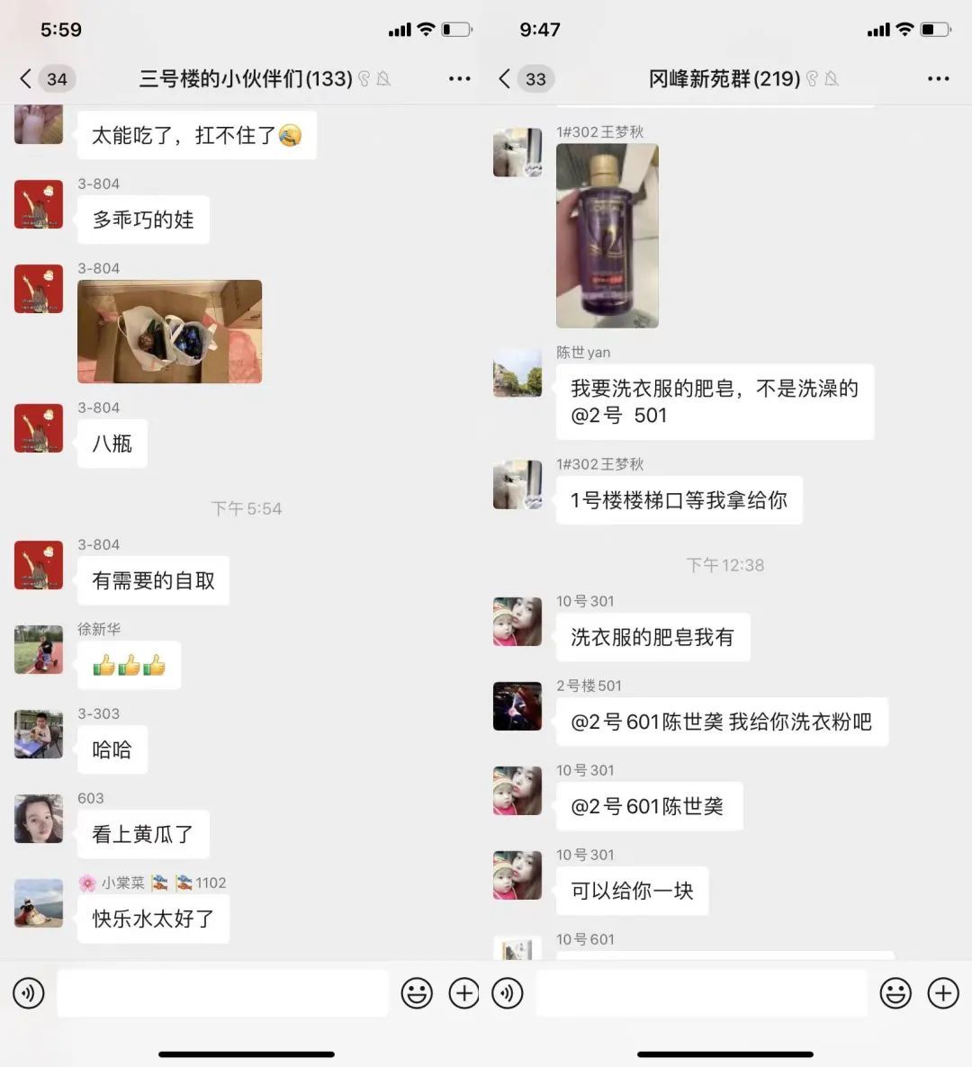 在杏花社区的微信群中,也常常出现邻里互助的消息,家里缺了什么调味品、日用品等,在群里喊一声就能收到热心邻居的积极回应。
