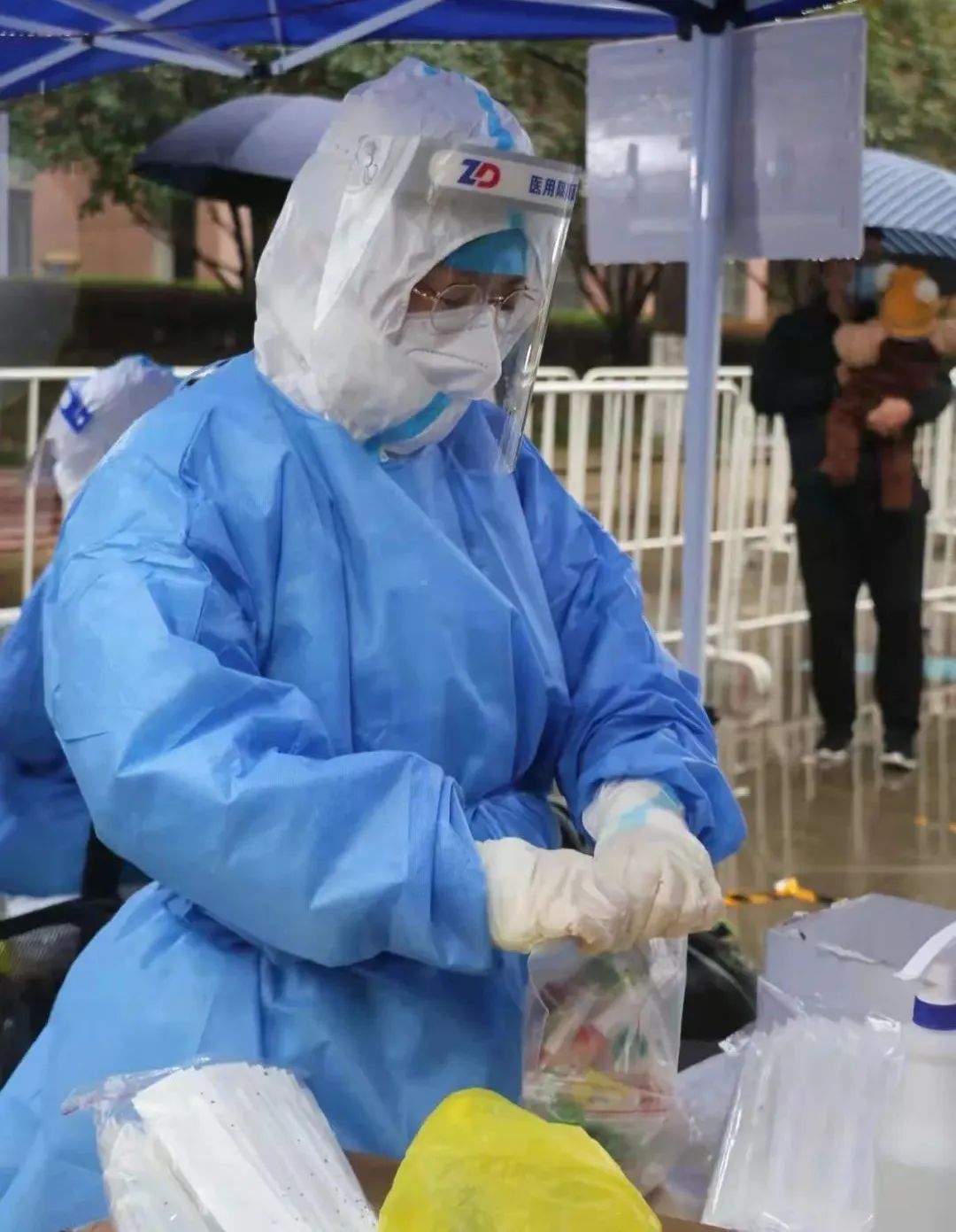 叶晓芳的志愿工作是医生助手。当医生完成核酸采样后,她需要接过棉签,将其拧断,完成旋盖、装盒等工作。“我有健身习惯,身体状况还不错。但拧棉签一天下来,我的胳膊非常酸痛,大拇指也红肿了,更别提医护人员要一直抬着手臂了。”叶晓芳说。