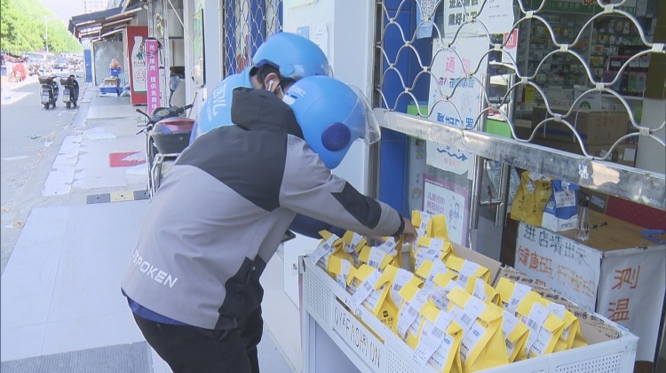 4月上午9点,记者在康沈路的一家零售药店门前看到,这里不断有“外卖小哥”前来取药。一名外卖小哥说:“一天能送二、三十单”。