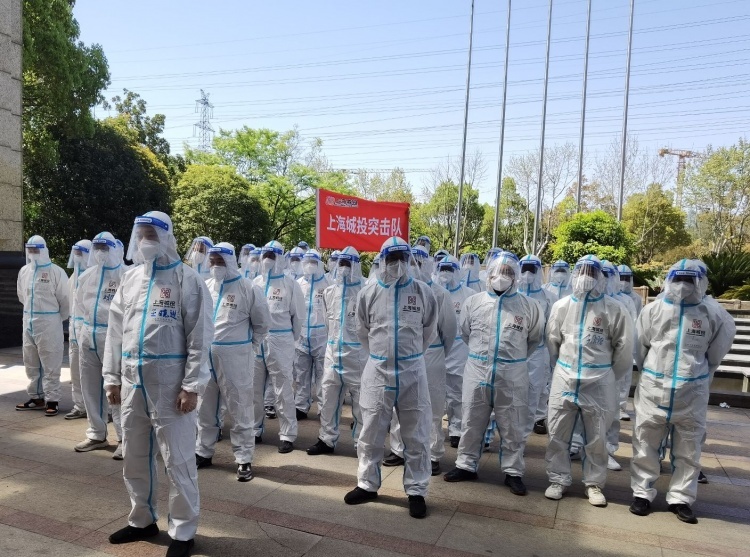 根据市委、市政府统一部署, 4月8日,市国资委党委紧急抽调党员志愿突击队,赶赴疫情较为吃紧的街镇,驻扎支援当地疫情防控。上海城投集团第一时间响应,短短数小时迅即组建了由53名共产党员和志愿者骨干组成的上海城投抗疫党员突击队,当天集结,逆行奔赴浦东新区北蔡镇。