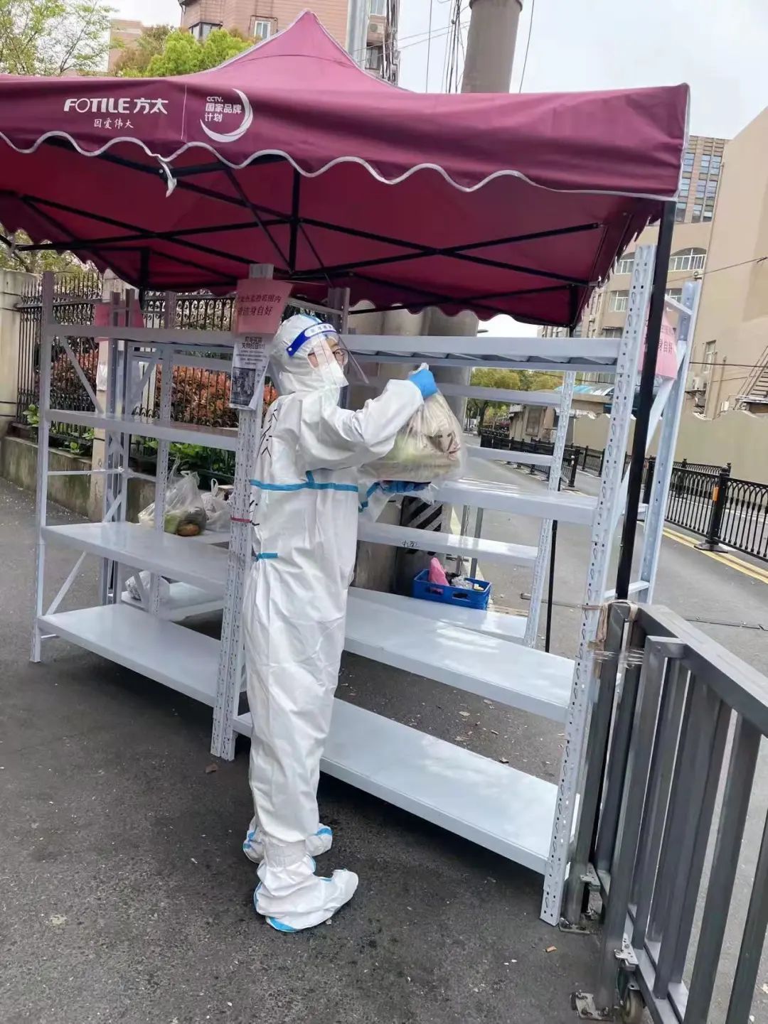卑琪颖:“生米”爸爸在亲子方舱支援前线,后方有我在徐汇区漕河泾街道东泉小区为居民派送物资。